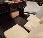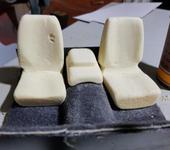 Пол был собран из пластмассы и покрыт ковролитом ( с разбитого авто ) . Сидения и бордачки сделаны из монтажной пены .