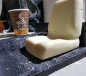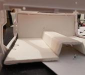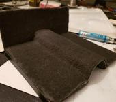 Пол был собран из пластмассы и покрыт ковролитом ( с разбитого авто ) . Сидения и бордачки сделаны из монтажной пены .