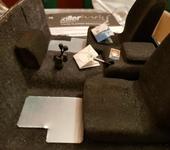 Пол был собран из пластмассы и покрыт ковролитом ( с разбитого авто ) . Сидения и бордачки сделаны из монтажной пены .