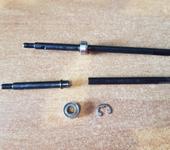 Удара не было. И не было клина. Разобрал. Тоже склоняюсь к браку. Уж больно идеально срезало ось. В месте крепления E-Clips, которая контролирует подшипник, и произошел “идеальный” разлом. Ось металическая. На фото видно что внутри оси имеется металл, который находится в стальной трубке темного цвета. Там где крепиться клипса этой трубки нет и сам вал поломался очень ровно, как будто балгаркой спилили. Аналогов на Али не нашел. оригинальной нет не у производителя и на амейне. Есть на Ебейе, но доставка в Украину 14 уе. Подожду немного когда появится на амейне. Оплатил им заранее, может быстрее пошевелятся.