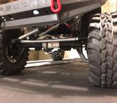 Что не очень понравилось, передний мост с тягой панара, при сжатии, нехило так уходит вправо. Надо чего-то мудрить с тягами, хотя для ползания особо мешать не должно.