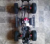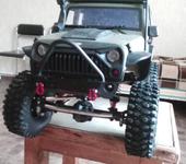 Крышку на мотор сделал из пузырька для таблеток,чтобы грязь не попадала.Бампер передний специально брал такой чтобы за морду не выступал,крепление под лебедку у него есть.Сзади да пустовато, антэнну еще не прикрутил,просятся брызговики но смотреться думаю не будут ,так-как колеса больно из арок выпирают.