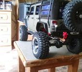 Крышку на мотор сделал из пузырька для таблеток,чтобы грязь не попадала.Бампер передний специально брал такой чтобы за морду не выступал,крепление под лебедку у него есть.Сзади да пустовато, антэнну еще не прикрутил,просятся брызговики но смотреться думаю не будут ,так-как колеса больно из арок выпирают.