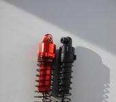 мои синии амортизаторы с двойной пружиной плохи тем что кольцо которое между двумя пружинами может застревать и не двигаться уже. из-за грязи и песка. когда грязь и песок подсыхают то кольцо может застопориться. надо после покатушек в чистоте их содержать. такие как у вас амортизаторы рассматривал к покупке но незнаю какая жесткость у них по сравнению со стоком аксиала 2.