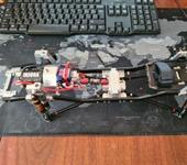 Конечно же все заказанное пришло, многое очень быстро, в среднем срок поставки 2-3 недели. Сегодня подсобрал в первом варианте линки и поставил колеса на место. Впереди стандартные инжоровские линки от 313 рамы, по фото видно что мост нужно сдвигать вперед, сзади временнно собрал на шпильке М4 и шарнирах от линков из того же комплекта, так сказать, определялся с размером, чтобы не пилить в неправильный размер.