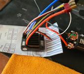 В ожидании кузова темка подзависла, пришел инжорский щеточный 540 моторчик на 55Т, тут даже писать пока не о чем, он просто встал в коробку и бодро крутит ее вместе с раздаткой. И неожиданно быстро, пришла лебедка, на наклейках, как и положено, название с очепяткой - WGRN )). Для управления лебедкой была попытка сделать из платы рулевой сервы от SMAX выключатель на 3-ий канал, видел что-то подобное здесь в ФАКе. Переменный резистор был выпаян, он оказался на 5кОм, вместо него впаял 2 резистора на 4,7кОм, от места впайки боковых ножек переменника к центральному, выход с этой платы оставил подключенным к мотору сервы для проверок, а то движение мотора лебедки ограниенно намотанным тросом. Но попытки нащупать середину триммированием аппы, не дали положительных результатов 😦 Заменил резисторы на 2кОмные, но результат тот же. И я пока в раздумьях, может кто уже проделывал такое?
