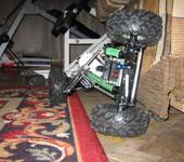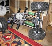 Акумы полимеры. места занимают очень мало, места где поставить много. Передаточное в трансмиссии около 25:1. Итоговая скорость получилась около 5 км/ч. Лазил под углом около 60 градусов. Прет без напряга. Мосты естественно заблокированы. Омортизаторы аллюминиевые от Т\Е-Махх Грязи не боится. Видео будет чуть позже.