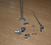 на первом рисунке нижняя “колодка”, разным цветом (серый, оранжевый) показаны отдельные детали которые после спаивались припоем, зеленый - стальной штифт, синий - пружинка, черный - сама рейка