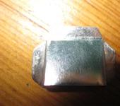 Сначала ножницами по металлу вырезали заготовку примерно 22х29мм, высота сектора, который загибается вокруг черенка 12мм.