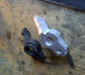 Сегодня случилась неприятность- сломался кулак на модели HSP. А поскольку на хсп и хаймото запчасти фиг найдёшь(…то: поехал я в мастерскую, взял кусок люминя, и замутил такой вот рычаг. Использовались: тиски, ножовка, напильники и надфили, гравёр и пиво, какое, не скажу) С виду не очень похож на оригинал, да и не стремился, но вся геометрия сохранена до 0, 01)