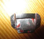 Сначала ножницами по металлу вырезали заготовку примерно 22х29мм, высота сектора, который загибается вокруг черенка 12мм.