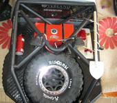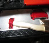 Сделал крепление для топора и огнетушителя.Долго думал как сделать.Вот что получилось.Всё можно без проблемм снять,но в то же время ничего само не выпадет,огнетушитель что бы снять нужно повернуть вокруг своей оси на 90 градусов,в чехле для топора вклеен силикон (от видиорега крепление на торпедо,а ля липучка силиконовая).Лопата тоже крепко держится.Никак не могу сообразить из чего туристический коврик замутить.Может кто нибудь подкинет идею?