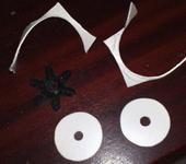 понадобится качалка аля ромашка или просто круглая, из пластика вырезал 2 круглеша, в них просверлил 2 дырки таких, что бы пролез болтик крепящий качалку
