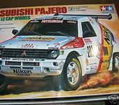 Это коробка от Tamiya 24121, Pajero Paris Le Cap Winner Kit, оно масштаба 1/24. Стоит в районе 40 баксов.