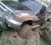 И снова в ил…большая масса авто и большая глубина илистой поверхности приводит к очередной посадке на мосты… а штурман тем временем отдыхает…