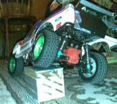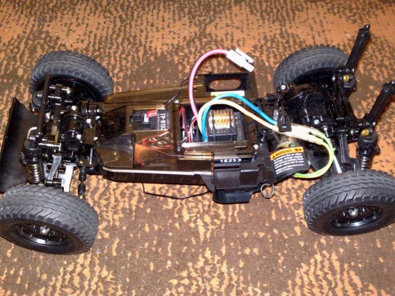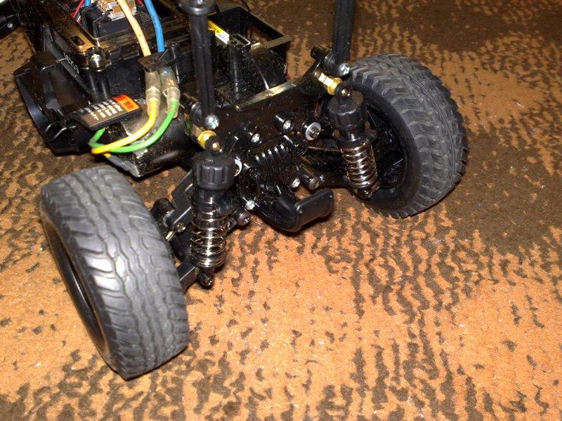 свалил вчера пораньше с работы и прокавырялся с агригатом до двух ночи, перебрал полностью подвеску, чуть- чуть растянул пружины, опустил кольца ниже, промазюкал графитовой смазкой крепления рычагов, коегде поставил шайбочки, задние аморы сверху крепятся на шариках, одел туды кусочки силиконовой трубки что бы не гуляли туда- сюда. итогом всего этого стало поднятие клиренса примерно на сантиметр и подвеска стала жоще, теперь он под своим весом не оседает и передние колеса не цепляют арки и почти неосталось люфтов, еще заменил бородатый механический регулятор на тамиевский, только он неподходит по габаритам- мешает самопальный радиатор, но снимать его не буду(радиатор в смысле), буду искать еще один такой же желательно, так как этот снял в другой машины