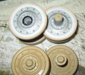 Эти втулки выточены из фторопласта, что бы использовать стандартные Тамия размерные подшипники для Ягдпантеры со старыми осями катков от ХЛ. Так как катки Ягдпантеры делал по отверстиям - точной копией Тамиевских, то и подшипники купил точных Тамиевских размеров. Не посмотрев сначала на оси. А потом уже дополнительно покупать 32 новых подшипника правильных размеров - жаба задавила. Выточил втулки. Резиновые бандажи - от Тигра от ПЖ.