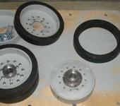 Обод опорных катков изготавливаю из трубы подходящего диаметра, диск выдавливаю в тисках по матрице из металла 1.2, ступицу точу на токарном. Себестоимость выходит небольшая. Могу выложить фото подробнее. Также готов выслушать замечания. Катки прогрунтованы но не крашены.
