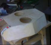 сегодня три часа убил на люк мехвода. как говорится первый блин комом, первый сделал вручну, получилось г… пришлось прибегнуть к высоким технологиям - электролобзику, получилось вроде даже и ничего. осталось шторки приделать в открытом виде и пластик вставить для имитации приборов.