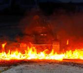 прошел очередной фестиваль RC-моделей, покатались, поснимали видео, ну а на второй день вообще разулись 😉 (раскрутилась стопорная гайка на механизме натяжения). надо отдать должное танчику, сам на одной гусенице доехал до ангара.