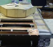 Устанавливаю двигатель в танк. Охлаждение моторчик от фена. Стартёр эл. двигатель от шуруповёрта. Вместо бендикса будет качаться вместе с редуктором как маятник. Включение хотел делать эл.магнитом, но скорее всего, поставлю серву.