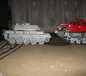 Друзья, хочу вам сказать на эту модель было потрачено-5 месяцев подбора комплектующих, 1-месяц подгонки и сборки, и 0,15 долларов(нож. полотно , плашка-М4 ).Так как в моём городе ,мягко говоря -очень туго с моим родом хобби то приходится лепить из того что имею.В дальнейшем планирую отлить гусеницы самостоятельно+приобрести мини токарный станок по металу и для полного счастья сверлильный вертикальный.В общем планирую заняться этим делом серьёзно+ нашол магазин который мне нужен( надоело совмещать советские движки с китайской апой-не любят они друг друга).