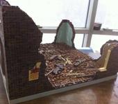 А кирпичи… можно вырезать из дерева\ пенопласта, можно взять лего блоки срезать лишние, полость залить и из них ваять(Видел я в продаже даже набор от карточной игры там такие кирпичики готовые были - покрасил и используй, в наборах от экспозиций тоже встречаются, но тут вопрос в масштабе.).