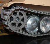 Для меня больше важно время и результат. Потому покупал на свои Пантеры сразу силуминовые опорники с подшипниками и осями. К Тамии подходят идеально. Ну и так как заморочен на копийности, надписи на бандажах мне были важны. Вес имеет значение, но передоз тоже не нужен. Ходовка весит без малого 3кг вместе с гусеницами и тамиевский редуктор быстро “поплыл”. Поставил стальной.