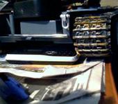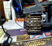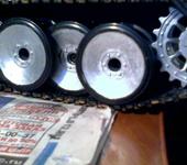 Поставил ось через подшипники на задние ленивцы, поставил подшипники на ведущие, вырезал два люка спереди и два сзади! установил 2 аккумулятора! вывел в передний люк кнопку включения танка, переставил динамик на место дымогенератора! поставил плату- 18 на клей к деревянной перегородке между отсеком двигателя и всем остальным танком!