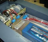 По питанию можно от 7 v - до 17 v смело, плата которая будет выводить звуки подключается в разрыв между приемником и регулятором двигателей, ее стоимость максимум 300 рублей. Там деталей кот наплакал, котроллер PIC18F2520, память 25LC256, HEF4066, УНЧ 34119, две электролитические емкости, разъем для внутрисхемного программирования, резисторы, размеры платы 42х50, односторонний монтаж, все детали SMD. Схему выкладывать не буду так как программа не написана, но идея хорошая, любой пользователь может с помощью программатора записать в микросхему памяти свои звуки. Вот фото прототипа!