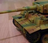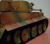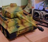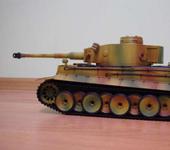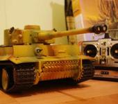 Наконец-то нашел свой фотик 😃 Решил показать вам моего тигрулю. Сразу скажу что красил не аутентично, мне домашние сказали чтобы никаких фашистов дома. Поэтому никаких декалей, опознавательных знаков. Типа трофейный 😃 Ну и цвета тоже подбирал не слишком мрачные, типа там артишок, охра. Ну получилось нечто среднее между каммо и просто веселым танчиком. Плюс везеринг из того что успел по форумам покраски найти. В танке переключатели перенесены под передний левый люк. Дымогенератор переделан в полностью пропорциональный. Айрсофт пока не работает, походу сломал когда разбирал. И да - я знаю что командирский люк не повернут, но чот вовремя не перевернул, а перекрашивать пока неохота 😃