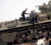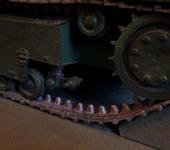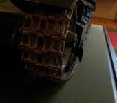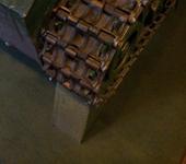 Материал-металл толщиной примерно 1,5-2мм. Точнее сложно определить, очень толстый слой масляной краски.Люки открываются,башни видимо можно повернуть. А теперь самое интересное-гусеницы. Они тоже покрыты краской-серебрянкой. Судя по всему отлиты из латуни. Качество отливок просто изумительное.