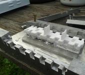Вот тут я и косякнул… Непродумал момент засыпки и по этому сделал всего 2 пенопластвые модели трака. К тому же, собрал форму на пружинах и в результате этого во втором траке полистирол вспениваясь отжал пружины и вылез наружу… надеюсь эти косяки исправить и повторить на ближайших выходных…