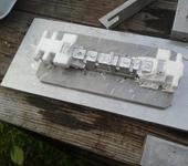 Вот тут я и косякнул… Непродумал момент засыпки и по этому сделал всего 2 пенопластвые модели трака. К тому же, собрал форму на пружинах и в результате этого во втором траке полистирол вспениваясь отжал пружины и вылез наружу… надеюсь эти косяки исправить и повторить на ближайших выходных…