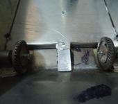 нержавейка 1 мм, но непосредственно под местом входа ведущего вала идет ребро жесткости (направляющая) из дюрали толщиной 10 мм. тут ее согнуть не реально. однако все возможно, поэтому место под дополнительные опоры я оставил и сами опоры сделал.