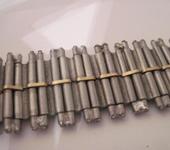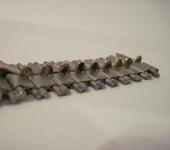 Начал делать Мт-т с самого тяжелого - гусениц. пока готово несколько звеньев и сделана пробная сборка. гусеницы штампованы из трубок.Очень похожи на гусеницы танка т 64 ( с них и делалась модель в Creo) На фоне батарейка АА ( пальчиковая)
