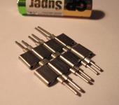 Начал делать Мт-т с самого тяжелого - гусениц. пока готово несколько звеньев и сделана пробная сборка. гусеницы штампованы из трубок.Очень похожи на гусеницы танка т 64 ( с них и делалась модель в Creo) На фоне батарейка АА ( пальчиковая)