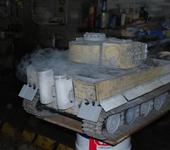 На строительство танка толкнули прекрасные модели Волгоградцев о готорых писали на данном форуме. За основу был взят всем хорошо известный китайский танк 16 масштаба. Игрушка была полностью разобрана и сняты все возможные размеры, и перещитаны в 6 масштаб. Танк стоит на работе и делается когда выподают свободные минуты, так что можно сказать что зделан на коленках. Стыдно презнатся но делаю уже почти два года. Часто приходилось переделыват разные вещи по несколько раз.Фоток раннего строительства не очень много , не претпологал что буду выкладывать на форуме. Немного нашёл и высылаю.