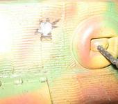 С Февр. 44-го, кроме катков с внутренней аммортизацией, ввели отбойник-бронировку у башенного погона.