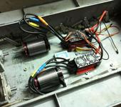 Два комплекта б/к двигатель и регулятор, мощность каждой составляет 5,2 кВт (не ошибка), что получается около 7,5 л.с., т.е. мощность силовой установки модели будет составлять 15 л.с.