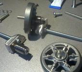 Отверстия в силуминовых ленивцах оказались между 9,5 и 10 мм, рассверливать не стал - купленные на базаре подшипники оказались диаметром около 9,5 (толщина 3мм, внутр.диам.5мм). Разницу залил эпоксидкой, замазав торцы подшипников смазкой.