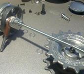 Ось ленивцев - винт М5. Тяга натяжения - М4. Центральная ось (на фото - длиннющая) - М4.