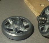 Отверстия в силуминовых ленивцах оказались между 9,5 и 10 мм, рассверливать не стал - купленные на базаре подшипники оказались диаметром около 9,5 (толщина 3мм, внутр.диам.5мм). Разницу залил эпоксидкой, замазав торцы подшипников смазкой.