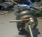 Отверстия в силуминовых ленивцах оказались между 9,5 и 10 мм, рассверливать не стал - купленные на базаре подшипники оказались диаметром около 9,5 (толщина 3мм, внутр.диам.5мм). Разницу залил эпоксидкой, замазав торцы подшипников смазкой.