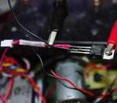 - нашу конструкцию из резисторов и диода припаиваем к плюсовому проводку (который мы разрезали) идущему к плате дыммашинки.