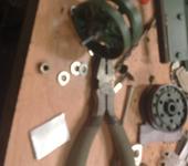 Далее механизм натяжения- Болт м3, шляпка обрезана, на болт трубка 4мм на конце расплющена, просверлено отверстие, шпилька обмазана холодной сваркой вставлена в трубку, трубку я немного молотком обколотил по болту
