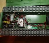 Далее вывод кнопок под_лючки 😃 А устанавливать их действительно сложновато, как мне показалось. В этой части танка и так всего понапихано - дыммашинка, редуктора. Вобщем сварганил пластиковую конструкцию из того что было под рукой. Кнопки пришлось ставить горизонтально, т.к. вериткально просто не умещаются. Все подогнал, уложил, подпаял - в собранном состоянии крепеж не болтается, сидит крепко.