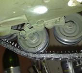 на основной массе машин - Т80Е1 со штампованными траками с металлическими грунтозацепами и резинометаллическими шарнирами шириной 585 мм (именно такая воспроизведена на модели):