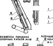 - как устроена подвеска первого опорного катка? На всех чертежах под подвески 4-ох катков прорезаны пазы в копусе, где стоит пружина; а на первый прорезь отсутствует. Как он должен быть устроен?