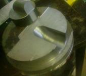 последнее что соорудил это фланец для закрепления токарного патрона на поворотном столе, чтобы закрепить в патроне заготовку просверлены отверстия по диаметру подходящему для 125 патрона, вкручены болты 3 штуки и за них уже и крепилась заготовка при обработке.